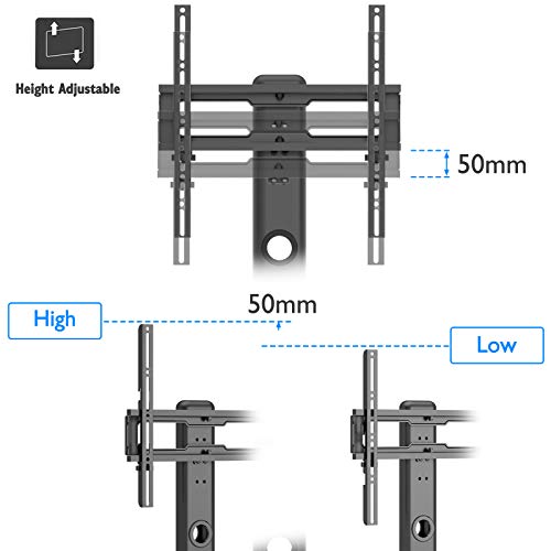 The mount bracket has a maximum load capacity of 40 kg (88 lbs), suitable for LCD/LED/Plasma TVs with screen sizes from 26" to 50". It features 30° swivel and height adjustment of 50 mm for optimum viewing.