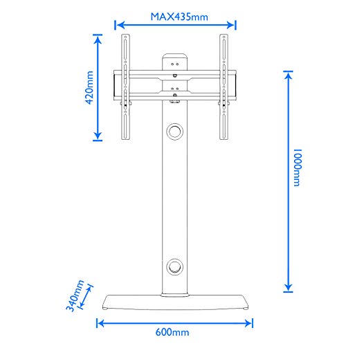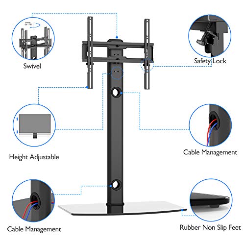 Made of all-black tempered glass, this TV floor stand base is very stable and durable. It can also be used as a shelf to store your DVD or Blu-ray player as well as your games console. The integrated cable management system helps to keep unsightly cables and wires out of sight.Suitable for TV screen sizes: 26-50" LCD/LED/Plasma; Compatible VESA patterns: 100*100, 200*100, 200*200, 300*300, 400*200, 400*300, up to 400*400 mm