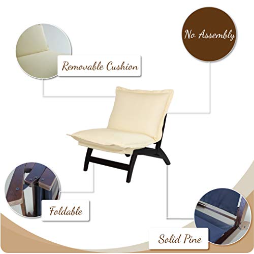Perfect for relaxation of all kinds, this lounger chair is highlighted by a clean, off-white cotton upholstery that's soft to the touch. Featuring sturdy hardwood legs for longevity and your peace of mind. Foldable design with removable cushion for easy storage and movement when you need it.Ultra-soft white folding cushion is comfortable and removable for easy cleaning