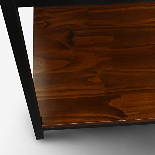 Simple and chic, the Metro End Table is all the utility without the attention. Upper and lower shelves are made of 1” solid wood. Spacious lower shelf provides an excellence spot for storage or decorations. Rich mocha-stain finish accommodates any look for your living room or bedroom.1" Thick solid wood shelves provide added storage and quality you can see and feel
