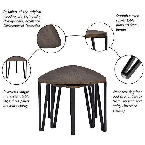 3PC Sacking Wood End Table, Side Table: