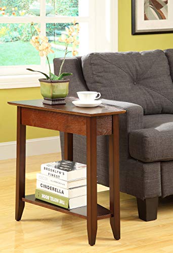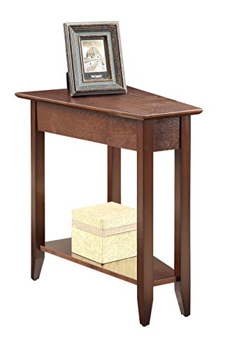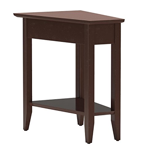Uniquely shaped, the American Heritage Wedge End Table is the perfect piece to fit anywhere. With a rich Espresso color and featuring bottom shelf storage, it'll be sure to give any room décor that finishing touch. It is also available in black and has a unique wedge shape that is easy to assemble with tools provided.Unique Wedge shape