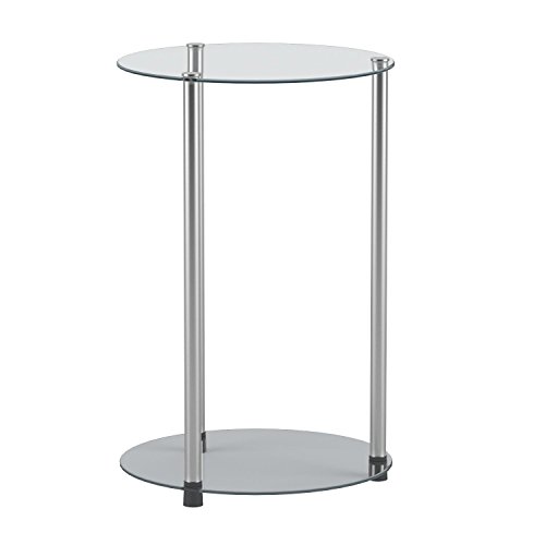 Designs2Go Classic Glass 2 Tier Round End Table is the perfect complement to any living room decor. Featuring an open modern design that provides 2 glass shelves for decoration, collections or art objects. This product will surely provide years of enjoyment.No tools required