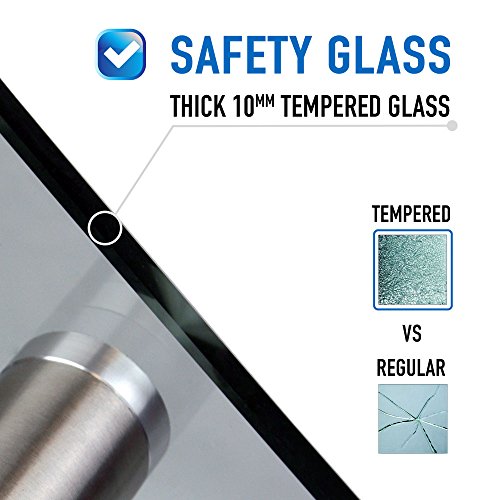 Tempered 3/8" / 10mm plate glass is strong and safe for your devices. Safety tested to hold four times it's rated weight of 70 lbs - the Aeon benchmark.