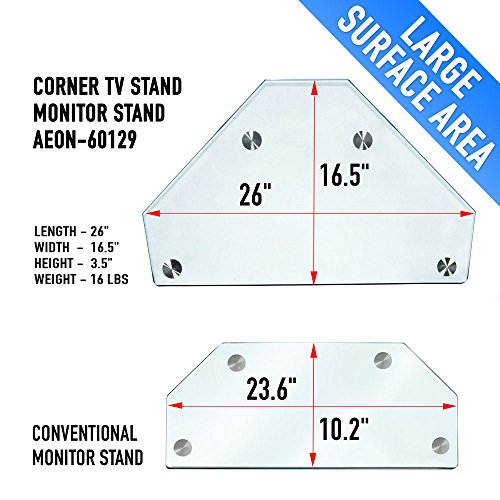 Weight: 16 Lbs.Corner Monitor Stand from Aeon Stands and Mounts. Now, add a shelf to any setting with this easy to assemble Aeon Multimedia Stand. Perfect for computer monitors, small TVs or A/V components.