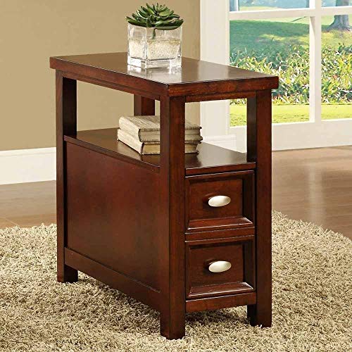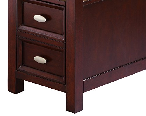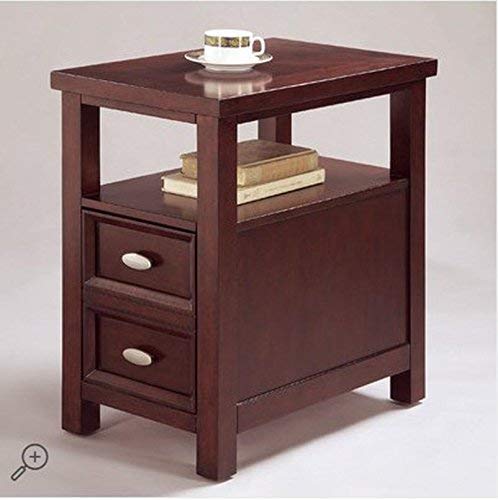 The Dempsey chair side table is an easy fit for any spot in the home. Nickel finish hardware add to the design. A deep drawer and shelf offer additional storage. Cherry Color.Transitional style