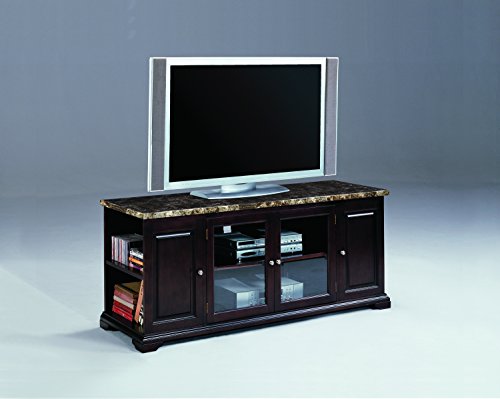 Transitional styling and plenty of storage make the Harris entertainment console an easy fit for your needs. Espresso finish with faux marble top.62 x 20 x 26.5"H