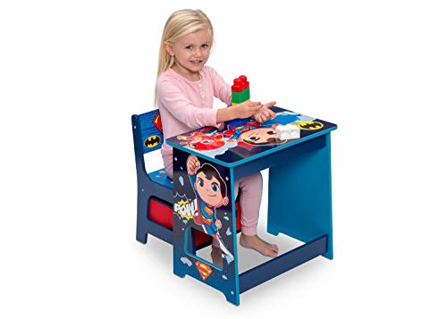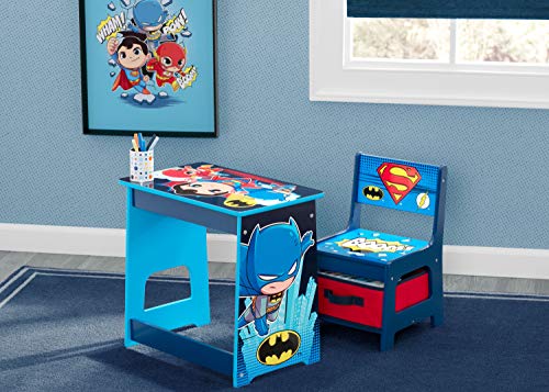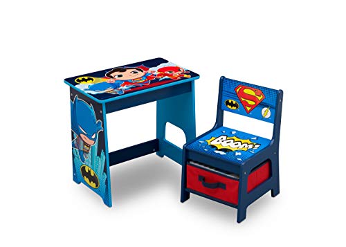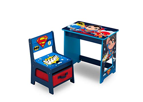 WHAT'S INCLUDED: Set includes one desk and one coordinating chair with built-in storageFOR THE DC SUPER FRIENDS FAN: This kids desk and chair set features colorful, stylized graphics of Batman, Superman and the Flash