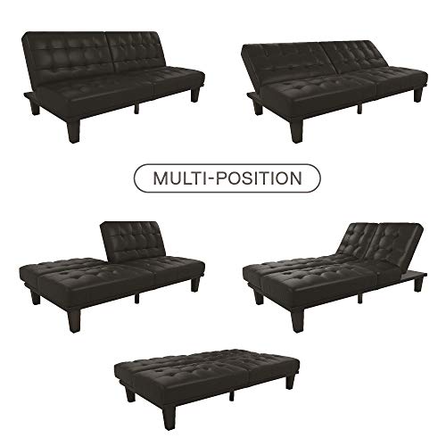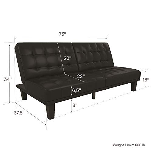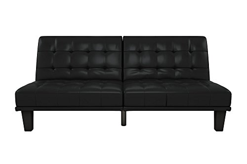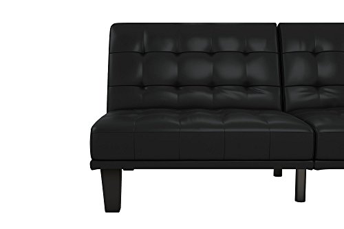 Imagine a sleeper sofa that’s flexible enough to change positions to suit every guest. That’s what you get with our revolutionary new Novogratz Edison Futon Lounger! Not only does this futon look great in your choice of tufted black faux leather or grey linen, it’s also designed to adjust to everyone’s level of comfort. The split back means each guest can sit up or lounge back, or simply lie both pieces back for the perfect place for overnight guests to spend the night. What’s more, you can also lift one side to create a double lounging space—perfect for reading, watching your favorite movies and more! This conveniently small and sturdy piece fits in even the tightest spaces yet commands attention in any room. We’ve also padded the feet to keep your floors looking like new!Mid-Century Modern low seating design with tufted detailing.