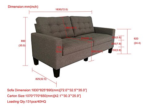 Brimming with modern appeal, the Dorel Living bowtie sofa boasts a timeless yet minimalist aesthetic making it the perfect piece for your living room or seating area. A tailored design, the classically styled frame gives this piece a timeless appearance that is at home in both formal and casual settings. A subtle tufted back and seat adds elegant detail to this mid-century modern inspired sofa, bringing attention to angular track arms and solid wood Pyramid legs with a black finish. The soft gray linen-look upholstery adds to its classic appeal and highlights its sculptural silhouette. The Dorel Living bowtie sofa is a unique piece that will complement the decor of any living room or den in your home.Contemporary design, mid-century modern inspired