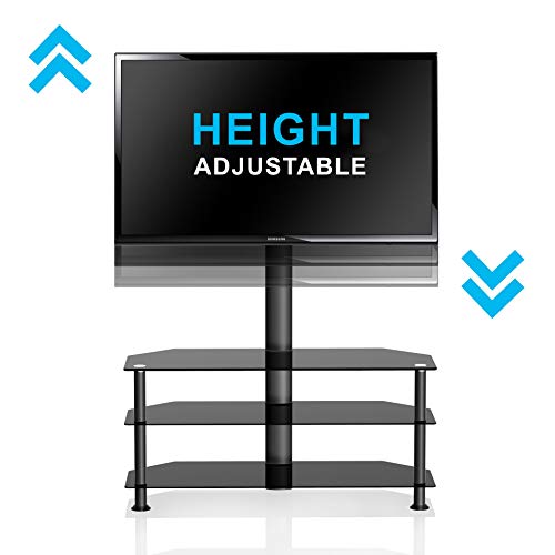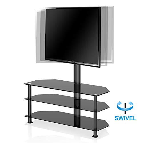 TV STAND WITH SWIVEL MOUNT- This TV stand adds a unique ability to swivel where others cannot. Now your TV can be directed up to 45 degrees in each direction towards the viewing area by pivoting the unit.