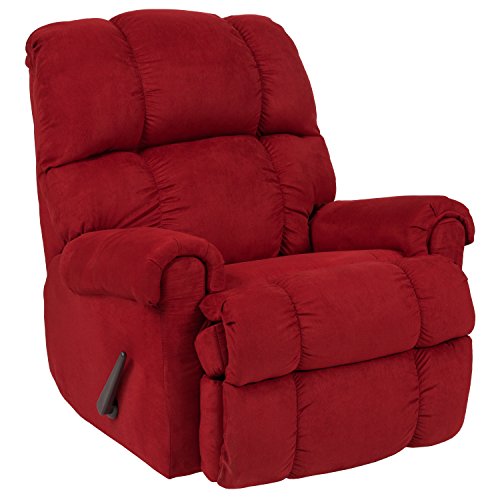 Rock your way into comfort with this microfiber recliner. The microfiber cover is very lush, comfortable, and easy to clean. Reclining furniture offers the best in relaxation for you to kick up your feet to watch TV, work on a laptop, or to just hang out with family and friends. With a quick pull on the Lever you can situate yourself in a comfortable position. Use as a traditional recliner or a soothing rocker that can aide in sleeping and with nursing mother.Contemporary style