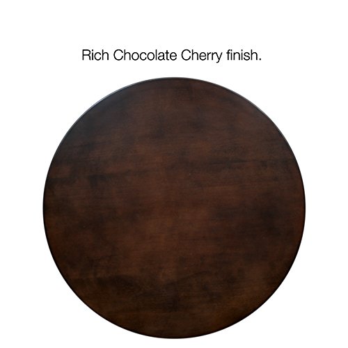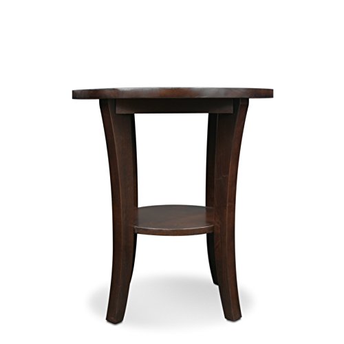 The Boa Round Side End Table offers a glamorous and curvaceous design that will match any décor. Sturdily built, these solid-wood tables will durably hold up to everyday use. The table is crafted from solid hardwoods and has a hand applied, Chocolate Cherry finish. Simple, knock-down assembly ensures that setting up is a snap. Simply attach the legs and you're done! The table takes up a small space with its 22" W x 22" D x 24" H footprint.All solid hardwood construction, Condo/apartment scale