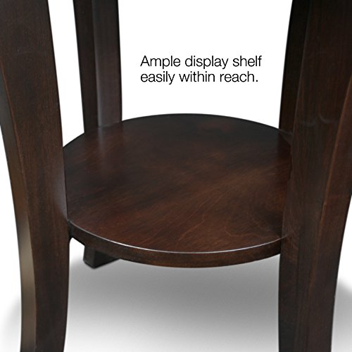 Clean transitional design with saber legs, a full one inch thick top, and high display shelf within easy reach