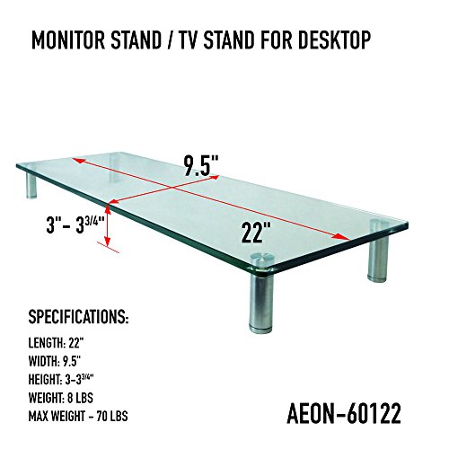 Weight: 8 Lbs.Add a shelf to any setting with this easy to assemble Aeon Multimedia Stand. Perfect for computer monitors, small TVs or A/V components.