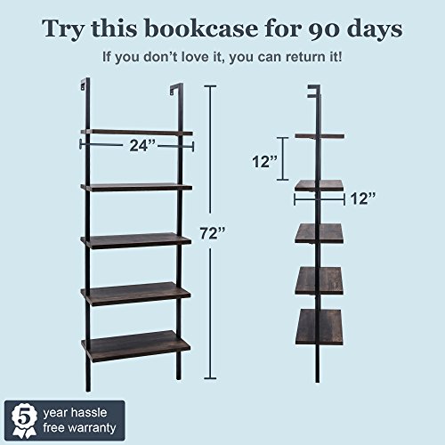Looking for a Bookcase that does its job without stealing the spotlight? look no further. This bookshelf's flat top creates more display space for books, plants and other decor items with functional style, without taking up a bunch of space! our elegant 5 shelf Bookcase lends comfort and minimalist style to your home. Featuring our easy-to-assemble design, with a durable wood and a steel metal frame. This is a stable, superior-quality piece at an exceptional price. The wood itself has a classy layout which adds to the piece and gives it a very unique appearance. It has an protective coating to protect the beautiful Bookcase from water damage, scratches and stains. Nathan James is the furniture company built for our generation. You don't have to spend a Fortune for quality design-first furniture, that's easy to assemble. Our guarantee is our word. Your purchase is backed by a 100% money-back guarantee. Try this book shelf for 90 days - if you don't love it, just return it. And, our 5-year warranty protects you in the long run. If you have any quality issues just Contact us and we will send you a replacement immediately, no questions asked. Must have Screw driver/ drill materials - matte black powder coated metal steel frame - 5 nutmeg wood laminate over engineered wood base - 2 Bookcase frame support - 2 Bookcase joint attachment - 4 pre-applied furniture pads Dimensions: Height: 72.52” length: 23.62” Width: 11.81"" weight limitation: 50 lbs. Per shelfDress up your room/ save precious space - artfully crafted of wood grain and metal, this Minimalist design will takes your home office, living room, Bedroom or any other room in your home to New design heights