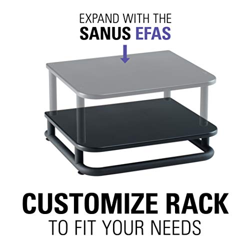 The Sanus Foundations Euro Series EFAB audio base Features a hand-sanded, Black, lacquered finish. Combine the base with EFAS audio expansion shelves to create a fully customizable audio rack that brings a contemporary look to any room. The base's open architecture keeps components cool with constant airflow, and quick lock clips route wires for a clean, organized look. Adjustable feet ensure the EFAB stays level on any surface.Constructed of heavy-gauge steel pillars with a solid, hand-sanded black lacquered shelf, this stylish yet sturdy design is ideal for use in your home theater or home office.