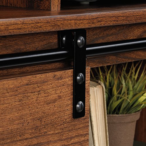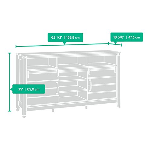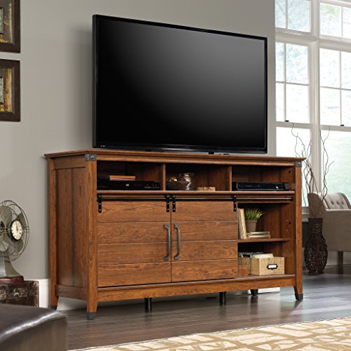 Give your home a stylish rustic appeal with this credenza from the Carson Forge collection. It accommodates up to a 60" TV making it perfect for gathering around to watch your favorite movie. Behind the sliding doors, it features hidden storage along with four adjustable shelves to store and display video/gaming components, movies, décor and more! Finished in a classic Washington Cherry, this credenza makes a great addition to any room in your home.Accommodates up to a 60" TV weighing 70 lbs. or less