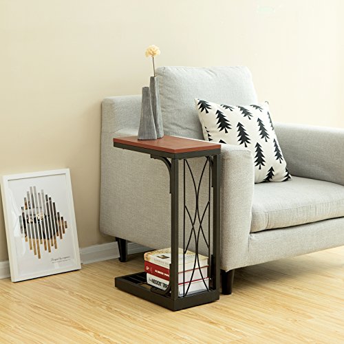 This SONGMICS side table is crafted with Thick Square baking finish metal tubes and MDF wood top, sturdy & durable; weight capacity can reach up to 50lb.The "C" structure design allows this side table to slide more close to your couch, more convenient to reach snacks, remotes, books on it while you're sitting. It can also sit level as an end table beside the sofa. It's a great accent piece for living room & bedroom both as sofa side table and end table.