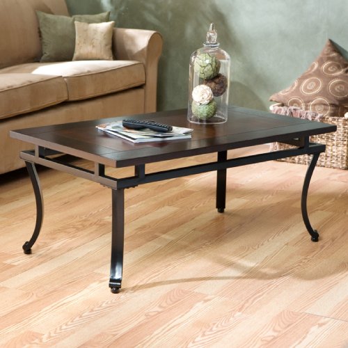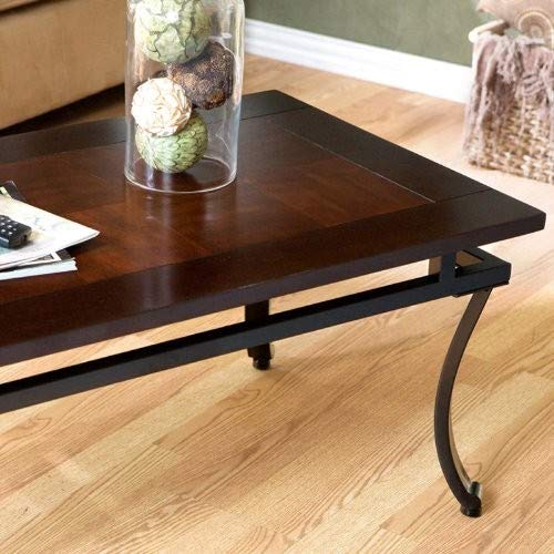 Rich and curvaceous, this espresso cocktail table is a wonderful accent to any transitional styling. The durable black metal frame has legs that arch inward to create a distinct look that adds a sense of flow to your room. Gracing the top of the frame is a beautifully stained espresso top that gushes with style. This checkerboard inspired tabletop invokes airy architecture along with metal for a two-tone mixed materials composition. Add this cocktail table to your home today for an instant upgrade. Dimensions include: Overall: 42" W x 24" D x 18" H. This one-of-a-kind item approximately weighs 38 pounds and can support up to 60 pounds. Only quality materials and manufacturing will do. Product materials include: Metal Tube; E1 MDF; Veneer. Assembly: Required. Made in China.Cocktail table with durable metal frame shows off home décor and keeps living room essentials within arm's reach