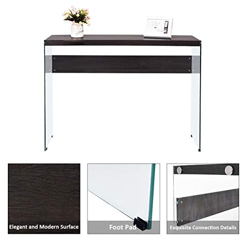 【Spacious Tabletop】The table top of this console table provides spacious space for storing or display your stuff and the tempered glass legs offers enough support for your items.
