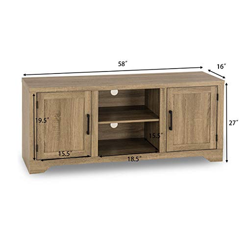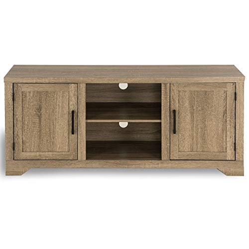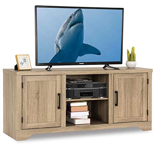 Package includes1 x TV stand1 x instruction【Large Storage Space】This TV stand is perfect for TVs up to 60 inches. The TV stand console is a perfect storage solution for your homes. It contains 2 cupboards and a display shelves - all with big capacity to satisfy your demand to place many things. It's design maximizes the space of your room.