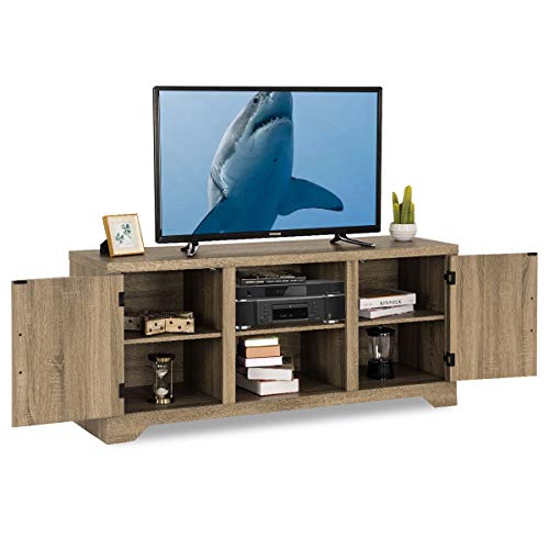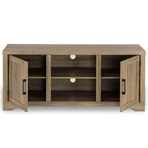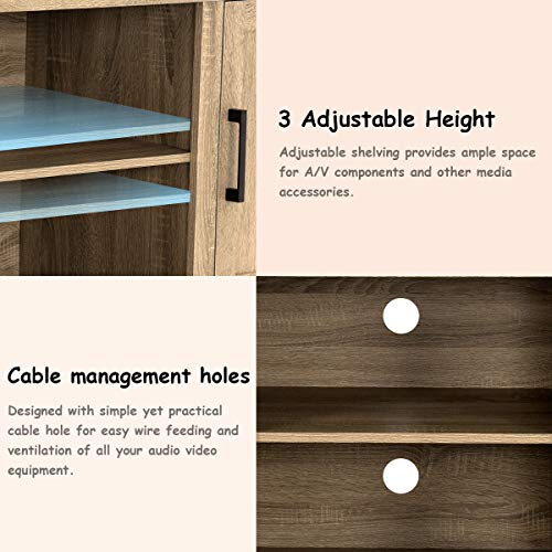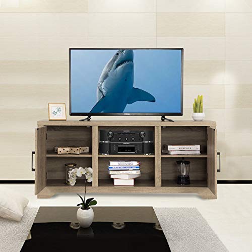 【Multi-function Use】The TV stand console is ideal for bedroom, living room or other places. There are two open shelves which you can keep your cable box, gaming console, DVD player, and speakers. And behind each door there are two shelves for organizing books, games, and DVDs. Keep your items in order.