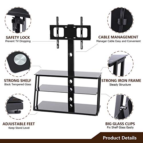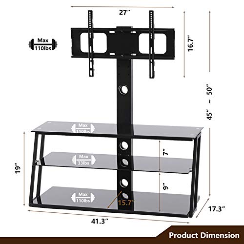 ▶ Please note :for curved screen TV products, please check the adapting bolt size or contact us to ensure compatibility.Customer service response in 24 working hours.▶TEMPERED GLASS - Black tempered glass,Capacity for shelf:110/33/110lbs, 110lbs for mount, back 100*50*mm metal tube with cable management system to hide the messy cable
