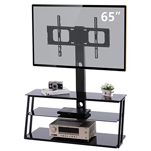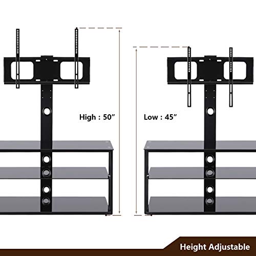 ▶STRONG AND STYLISH - Three tempered glass shelves are strong and stylish. Aluminum framing is powder coated to enhance the look of any living room. High-quality construction and open architecture maximize airflow and provide the enhanced strength needed to handle even the largest televisions