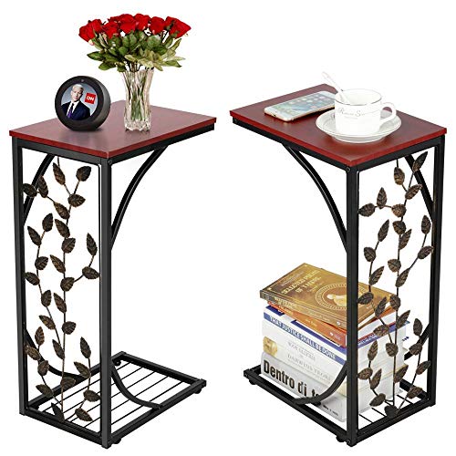 2pcs tables in one set! This side sofa table is constructed of high quality metal frames and eco-friendly P2 MDF board. The C shaped design allows its base to slide under your low-clearance sofa/bed and provide you a more convenient access to snack, drinks and books. The lower iron mesh provides extra storage space for your books, bags, etc. This stylish leaf pattern snack table can add sense of fashion and art to your living room, bedroom and office.