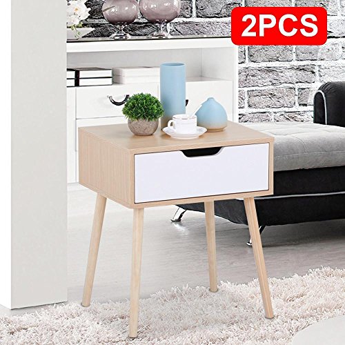 2pcs Modern Sofa Side End Table Nightstand with Drawer Wooden Legs