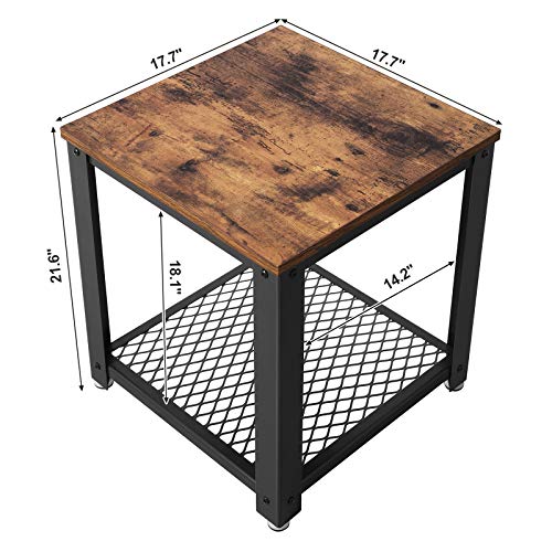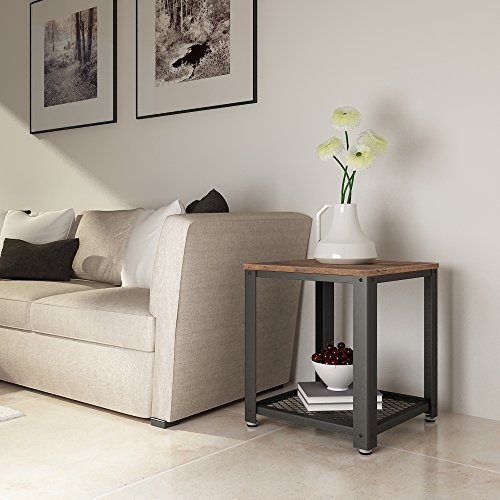 VASAGLE represents a combination of functionality, durability and stylish Vintage designs. If you want to give your rooms an individual touch and an antique aesthetic, Our Vintage furniture Series can achieve impressive effects. thanks to the matte-black iron frame, This end table is not only a real enrichment for the lovers of romantic Vintage furniture, but it’s also a unique addition for the industrial style Fans who want to add more to their home. a piece of furniture doesn’t benefit from even the most beautiful appearance if it lacks functionality. Therefore, our side table has a robust metal shelf for magazines or books, which can hold up to 33 lbs. In addition, the furniture can be used in a wide variety of places as the small cube shape cuts a fine figure as a bedside table in the bedroom or as a coffee table in the living room. specifications: - Color: Vintage, Black- material: particle board, iron frame- product size: 17. 7"L x 17. 7"W x 21. 7"H (45 x 45 x 55 cm)- weight: 13. 2 lbs (6 kg)- load capacity of tabletop: 44 lbs (20 kg)- load capacity of metal shelf: 33 lbs (15 kg)package contents: - 1 x side table - 1 x instructions - 1 x Allen keySturdy & durable: Made of angle iron, the structure is solid and stable; coated with veneer, the Top surface is waterproof and wear- resistant; Simple yet practical