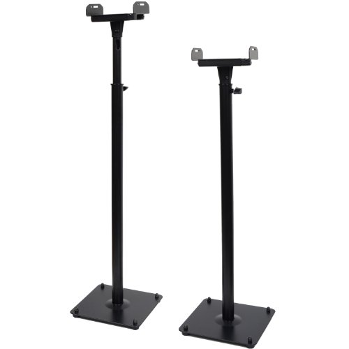 Designed to accommodate satellite surround loudspeakers from most major manufacturers. Adjustable height for personal preference. Unsightly cables concealed via central hole in the provided brackets. Universal Compatibility with the majority of leading brands of surround loudspeakers, including Acoustic Energy, Sony, Bose and many others.Heavy duty steel speaker stands for surround sound