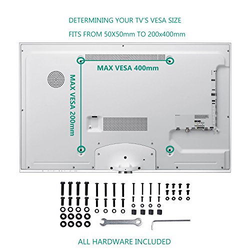 - Compatible the VESA mounting holes on the back of your TV, the mounting holes must be less than 8” x 16” (200x400mm).