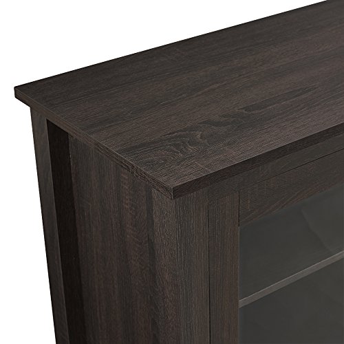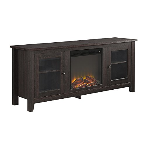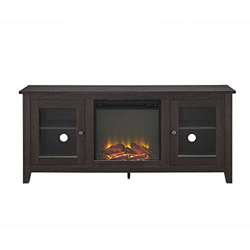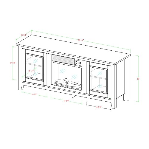 Create a warm, entertaining space in any room of your home with this wood media stand with electric fireplace. Crafted from high-grade MDF with a durable laminate finish to accommodate most flat panel TVs up to 60 inches. Features adjustable shelving behind two side cabinets to fit your components and a cable management system. Installation requires no technician, simply plug into standard household outlet and no venting required.High-Grade MDF