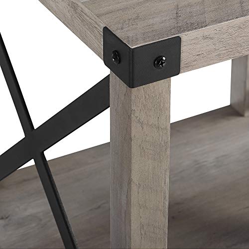 Perfect your bedroom with our urban industrial side table featuring a metal x-shaped frame. This rustic styled accent table gives an industrial look to any room, from your bedroom to your living room. With accents of metal throughout starting from each table top corner to the x design on the two sides of the table. These black painted metal pieces work against the solid design, while the built-in shelf and table top provide function.Featuring x-shaped accents for added style