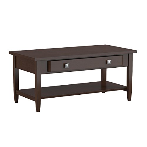 Richmond Coffee Table has clean profile, perfect for living or family room. This compact console offers layers of function with one larger drawer and a bottom shelf. Overall table size is 40-Inch W x 20.53-Inch D x 18.11-Inch H. Table Top Dimension is 40-Inch W x 20-Inch D. Drawer inside dimension is 28.82-Inch W x 11.29-Inch D x 2.59-Inch H. Shelf size is 37.95-Inch W x 15.27-Inch D. Clearance from apron to shelf is 7.87-Inch. Constructed with combination of solid and composite wood in warm Antique Walnut finish. Assembly Required.Drawer Dim: 28.82-Inch W, 11.29-Inch D, 2.59-Inch H, shelf Dim: 37.95-Inch W, 15.27-Inch D